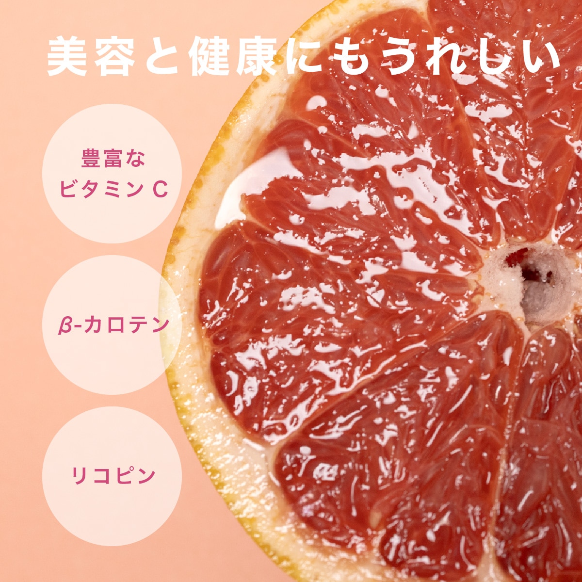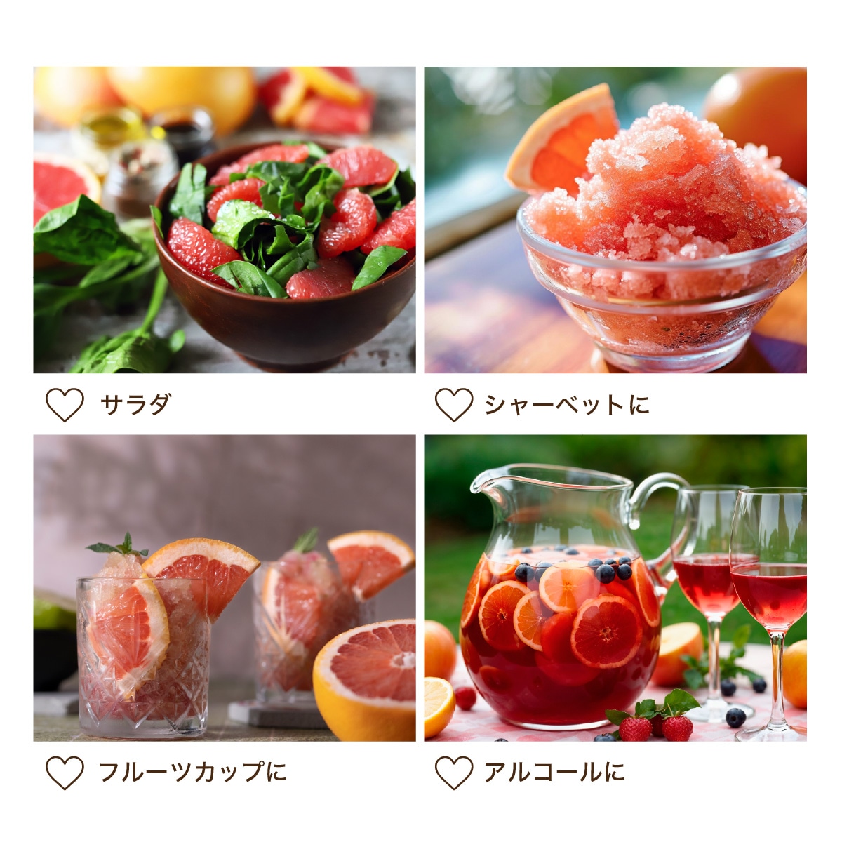 ルビーグレープフルーツは、爽やかな酸味とジューシーでサクサクの食感が魅力。ドリンクやスイーツ、サラダのトッピングなど幅広くアレンジできます。