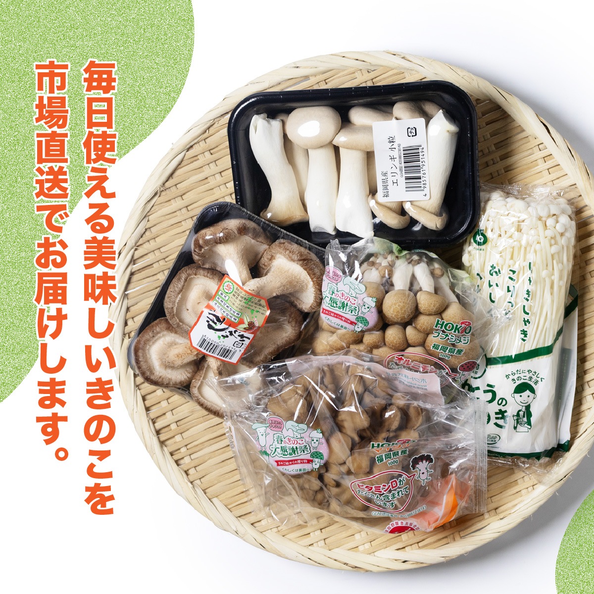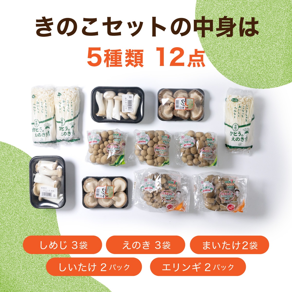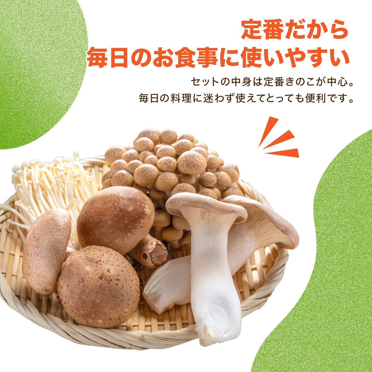 ・しめじ 3袋 ・えのき 3袋 ・まいたけ 2袋 ・しいたけ 2パック ・エリンギ 2パック 毎日の料理にたっぷり使える、 バランスの良いきのこセットです。