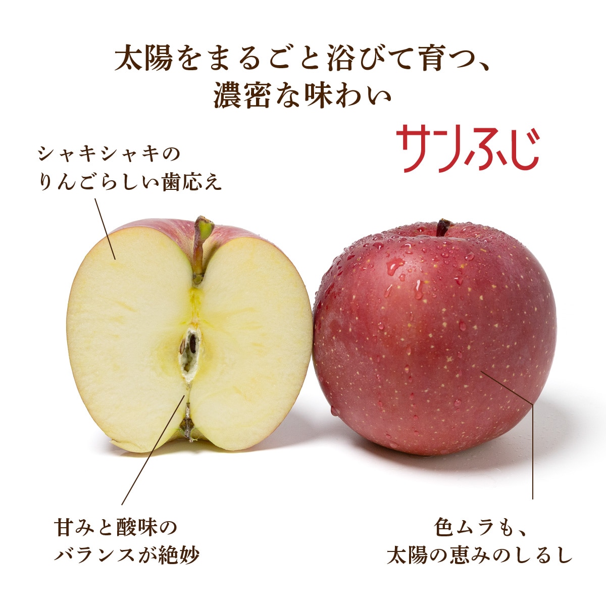 ◾️シャキシャキのりんごらしい歯応え ◾️甘みと酸味のバランスが絶妙 ◾️色ムラも、太陽の恵みのしるし