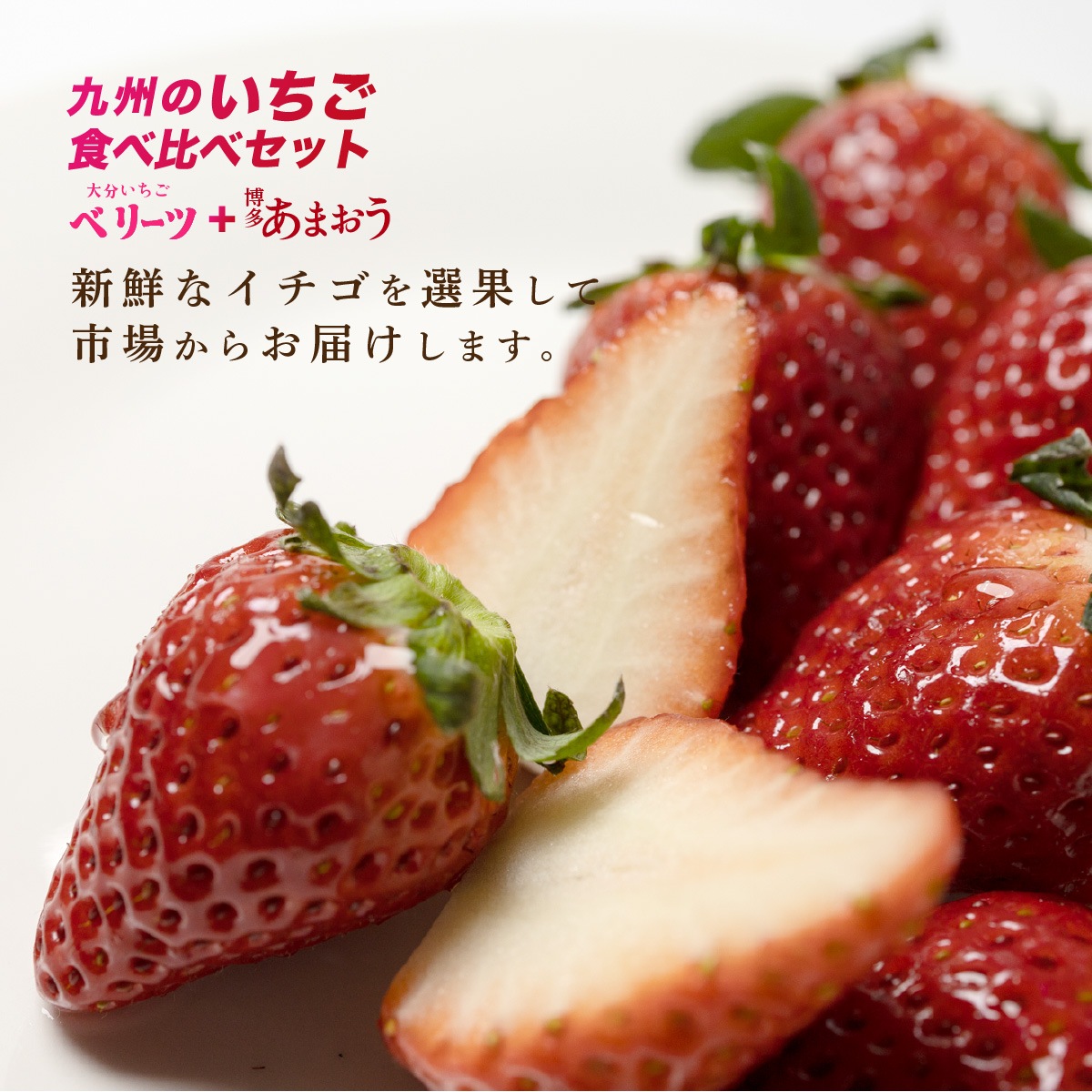 九州を代表する2大いちごブランド、 福岡の「あまおう」と、大分の「ベリーツ」。 それぞれに個性があり、魅力の方向性もまったく違う2品種を、 同じタイミングで味わえる贅沢な食べ比べセットをご用意しました。 一口目で感じる甘さ、噛んだ瞬間にあふれる果汁、そして食べ終わったあとに残る香りの余韻。 食べ比べてこそわかる、九州いちごの奥深さと美味しさを、ぜひご体感ください。